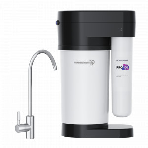 Высокоселективная обратноосмотическая мембрана PRO 100 (производительность до 380 л/сут) обеспечивает глубокое обеззараживание и умягчение воды, защищая бытовые приборы, такие как чайник, кофемашина, утюг, отпариватель, увлажнитель воздуха от белого известкового налёта и накипи, продлевая их срок службы.
